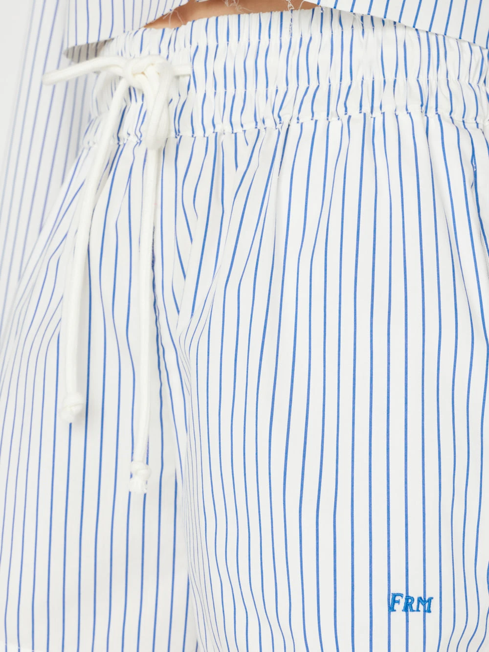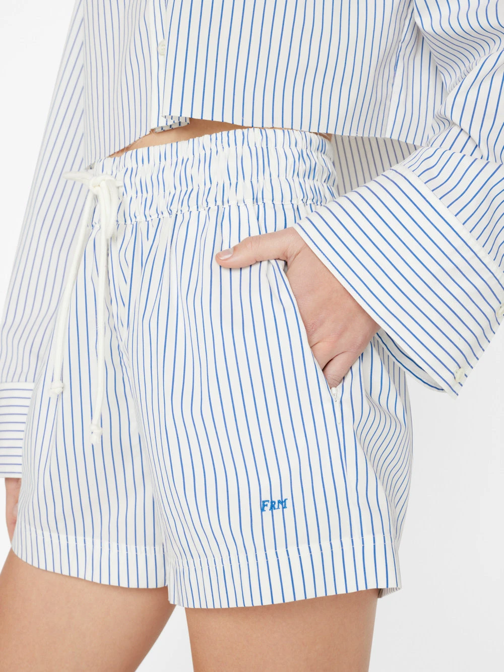 One-half of summer’s chicest lounge set, the minimalist design behind these drawstring shorts makes them incredibly versatile. Crafted from crisp cotton with a little stretch, the Cobalt stripes are pool-party perfect with a bikini top, white tee, or the matching oversized shirt.