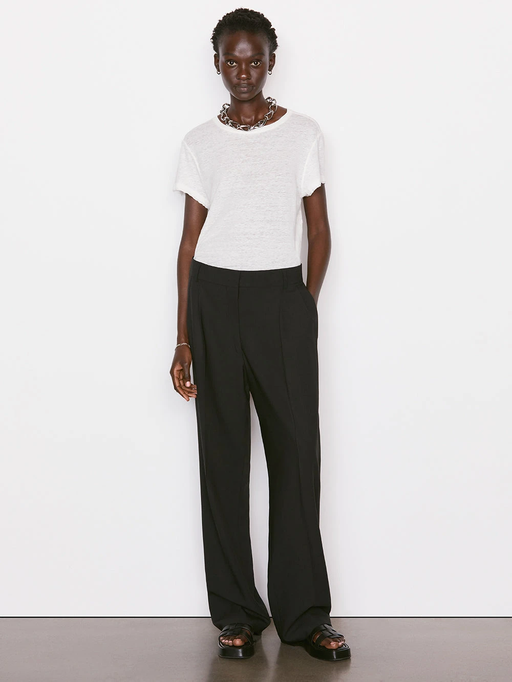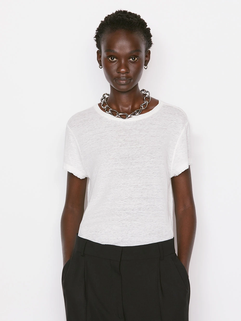 Crafted from light, breathable 100% organic linen for an elevated finish, this essential tee is slightly fitted through the body for the perfect fit. Even the short sleeves are cut to flatter—making this everyday tee a go-to for a laid-back yet pulled-together aesthetic.