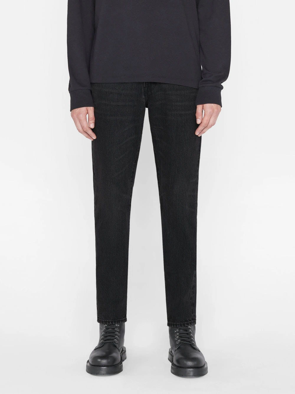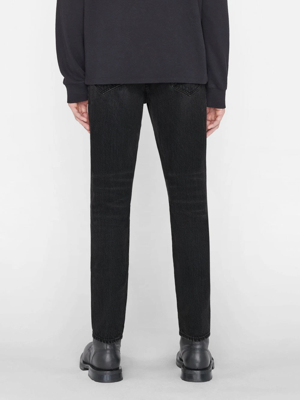 A FRAME signature jean designed with a classic 5-pocket construction, comfortable mid-rise waist, straight leg, and tapered slim fit at the leg opening. Crafted from premium 100% cotton that lends a classic rigid feel that wears in over time.