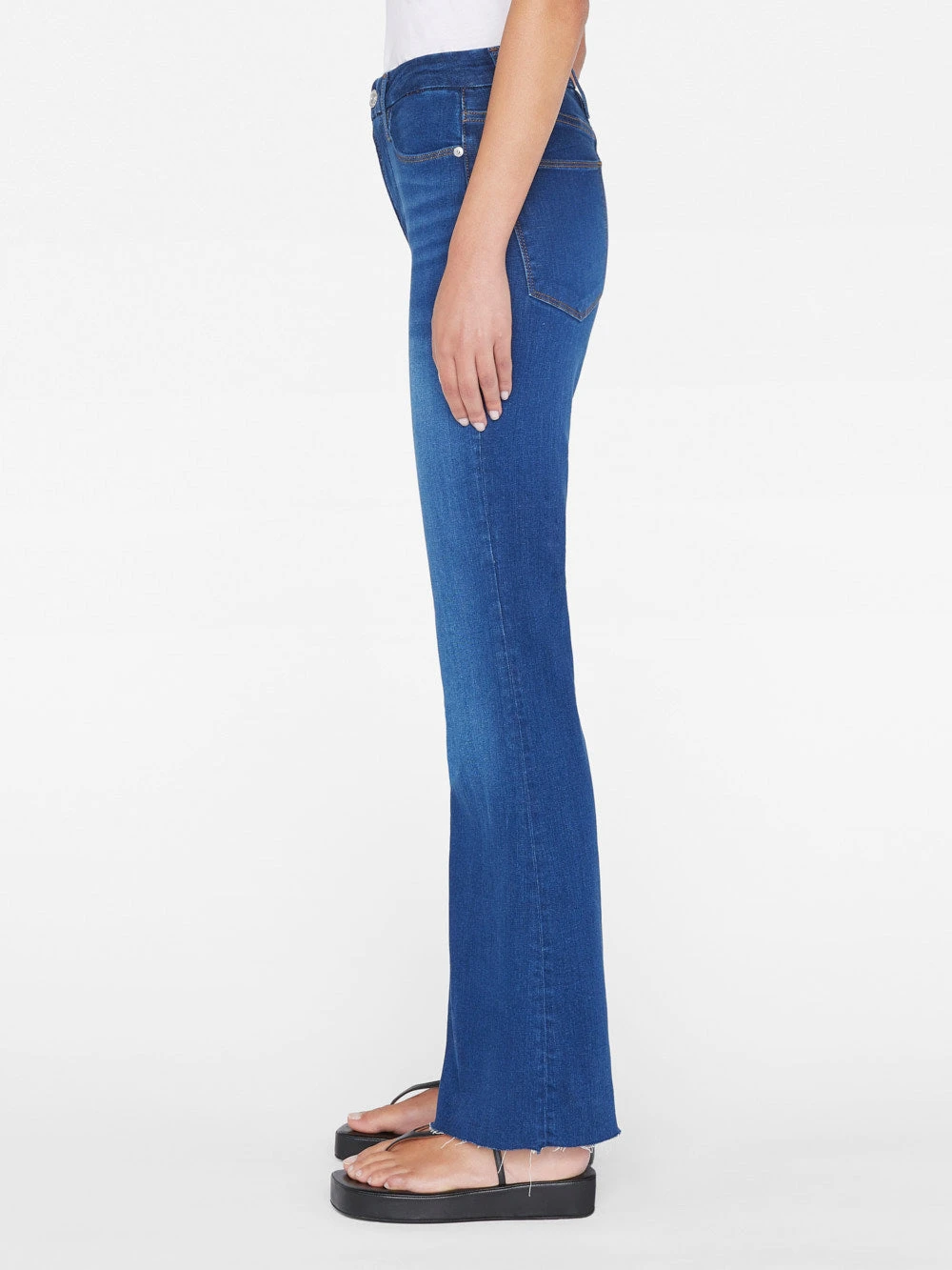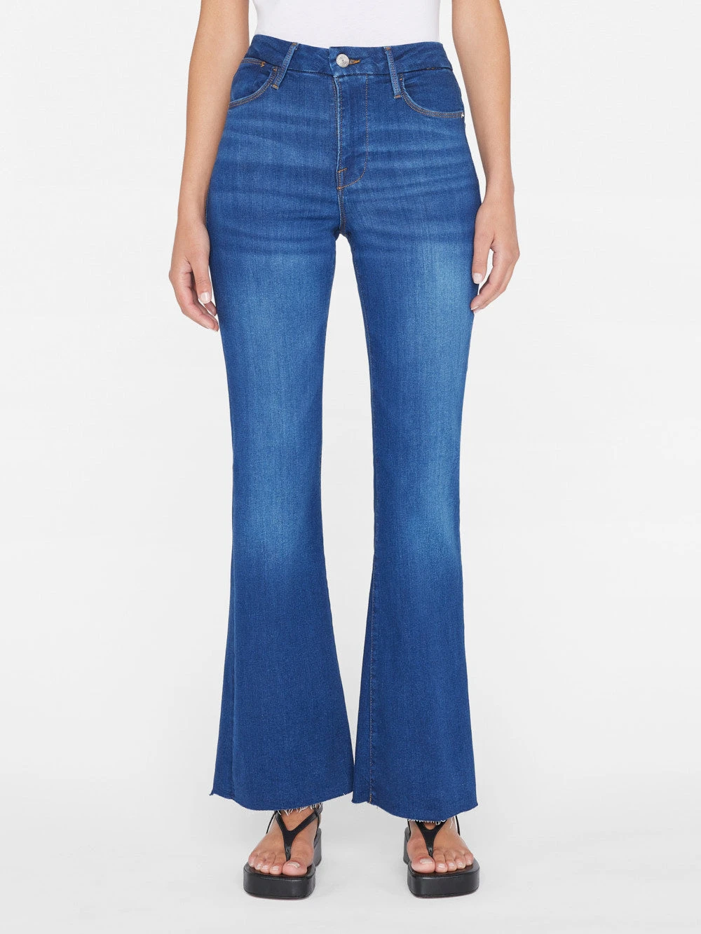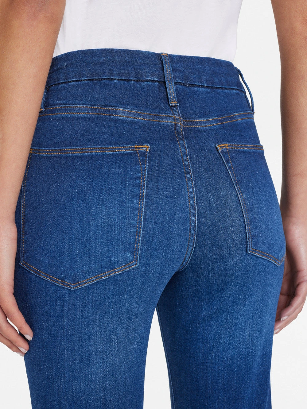 Le Easy Flare is a new summer icon with high-rise, full-length flared leg finished with a raw hem and a shorter inseam than the beloved Le High Flare. Done in super stretch dark wash denim, this relaxed fit dropped just in time to pair with leather slides, classic thongs, and fisherman sandals all resort season long.