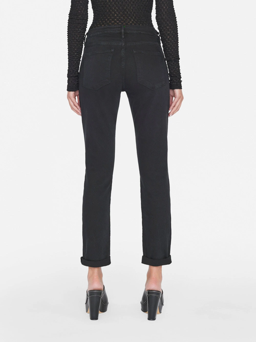 A Sophisticated Boyfriend Jean with a Tailored Straight Leg Silhouette. Crafted from Premium Black Denim with Medium Stretch.
