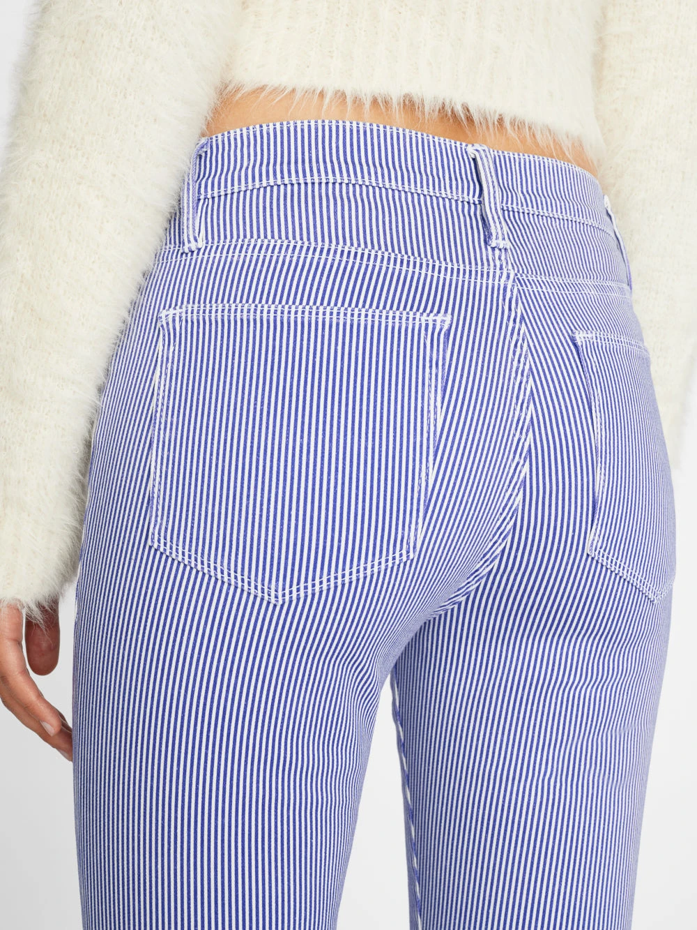 Please note: This is a Sale style. A $12 restocking fee applies for any return that includes Sale styles, deducted from the refund total. This high-rise jean is crafted from blue-and-white striped stretch denim for a fresh spin on nautical style. Form-fitting through the hips and thighs, with an easy flare from the knees, this silhouette highlights the waist and elongates the leg for a universally flattering fit.