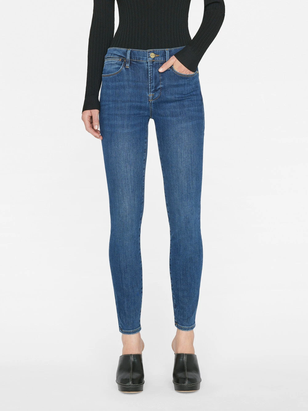 Please note: we are in the process of updating our denim hardware. Items will ship with either gold or silver hardware.