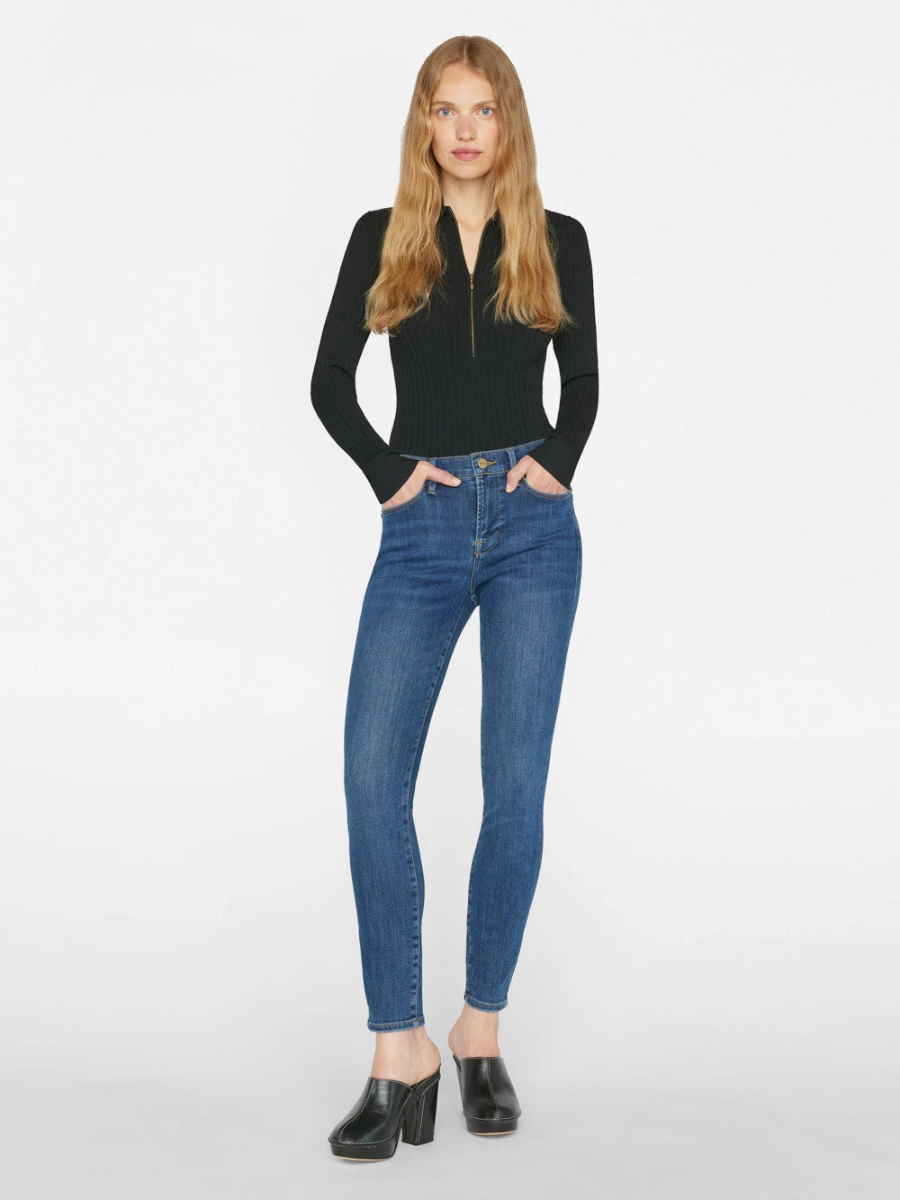 A classic high-rise Skinny Jean with a modern feel. Design to sit at the small of the waist with a form-fitting shape, this versatile wash is cut from premium stretch denim with slight fading and whisker detailing.