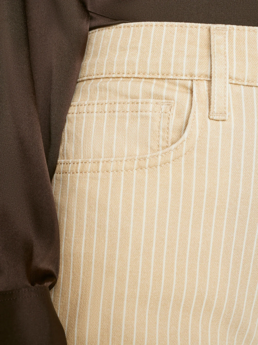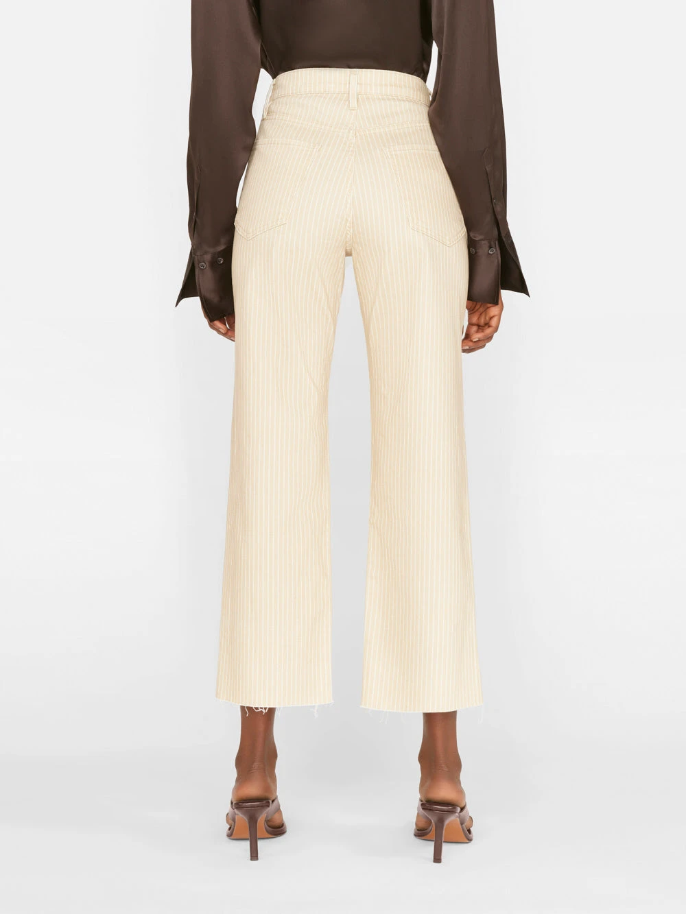 Our beloved Le Jane fit, in a flattering, on-trend crop length. This ultra-high-rise jean is fitted through the hips, slightly relaxed at the thigh, and straight through the legs for a nostalgic look. Crafted from comfort stretch denim in chic Sand and white stripe, this pair is finished with a raw hem.