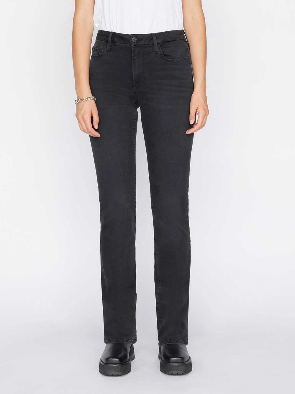 Our Bestselling Le Mini Boot style, crafted from washed black super stretch denim for comfort and style. With a universally flattering mid-rise waist and full length inseam, this clean, classic silhouette defies trends and gets better with every wear.
