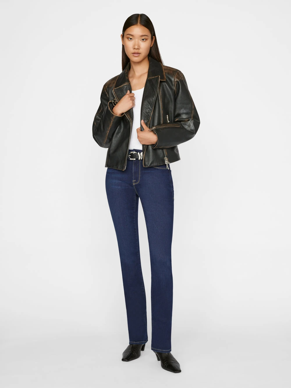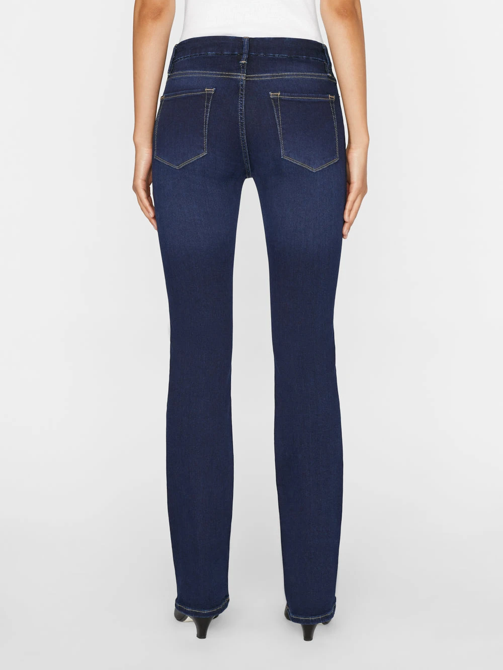 Please note: This is a Sale style. A $12 restocking fee applies for any return that includes Sale styles, deducted from the refund total. Our Bestselling Le Mini Boot style, crafted from super stretch denim in a blue-black wash. This pair features silver hardware for an elevated look that can be dressed up or down. With a universally flattering mid-rise waist and full length inseam, this clean, classic silhouette defies trends and gets better with every wear.