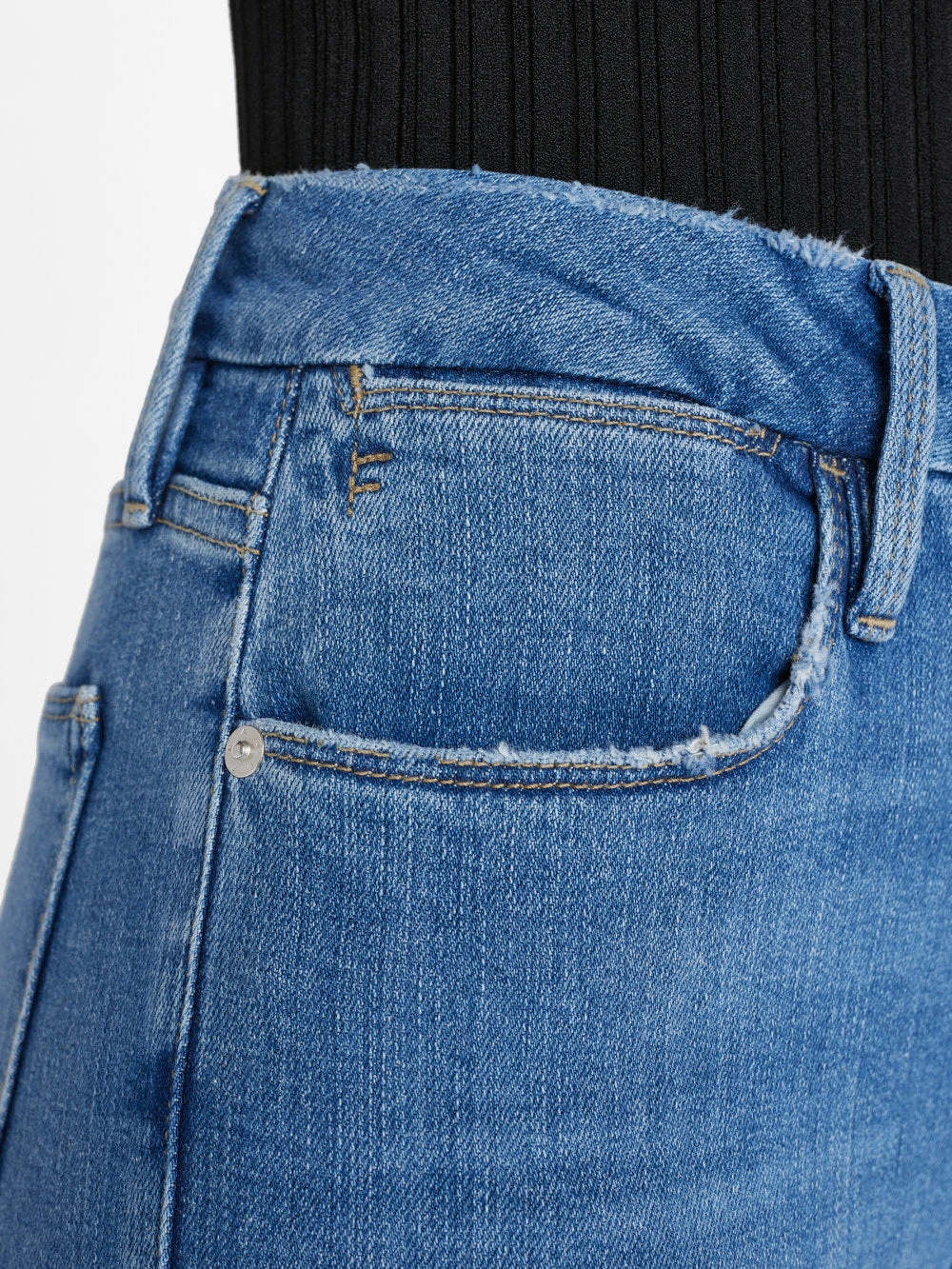 An elongated denim silhouette designed with an ultra-high 11 1/4″ front rise, sleek straight fit, and a cropped 27″ inseam. Crafted from a stretch cotton modal blend for the softest wear.