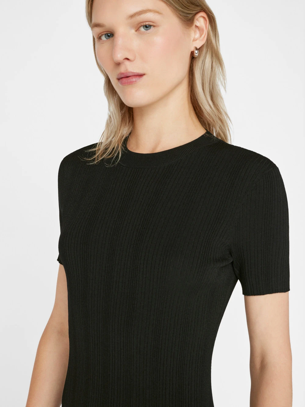 Done in ribbed Noir fabric with a slight sheen, this short-sleeve mini dress features cutout details at the top of a high slit, for a subtly sexy double keyhole detail. With a minimal silhouette that can be dressed up with heels or down with white trainers, this dress is a summer closet essential.