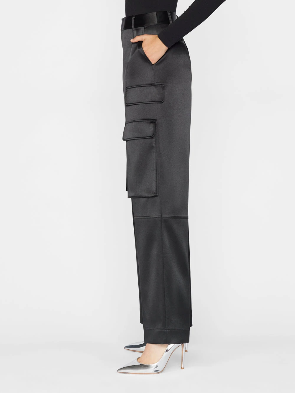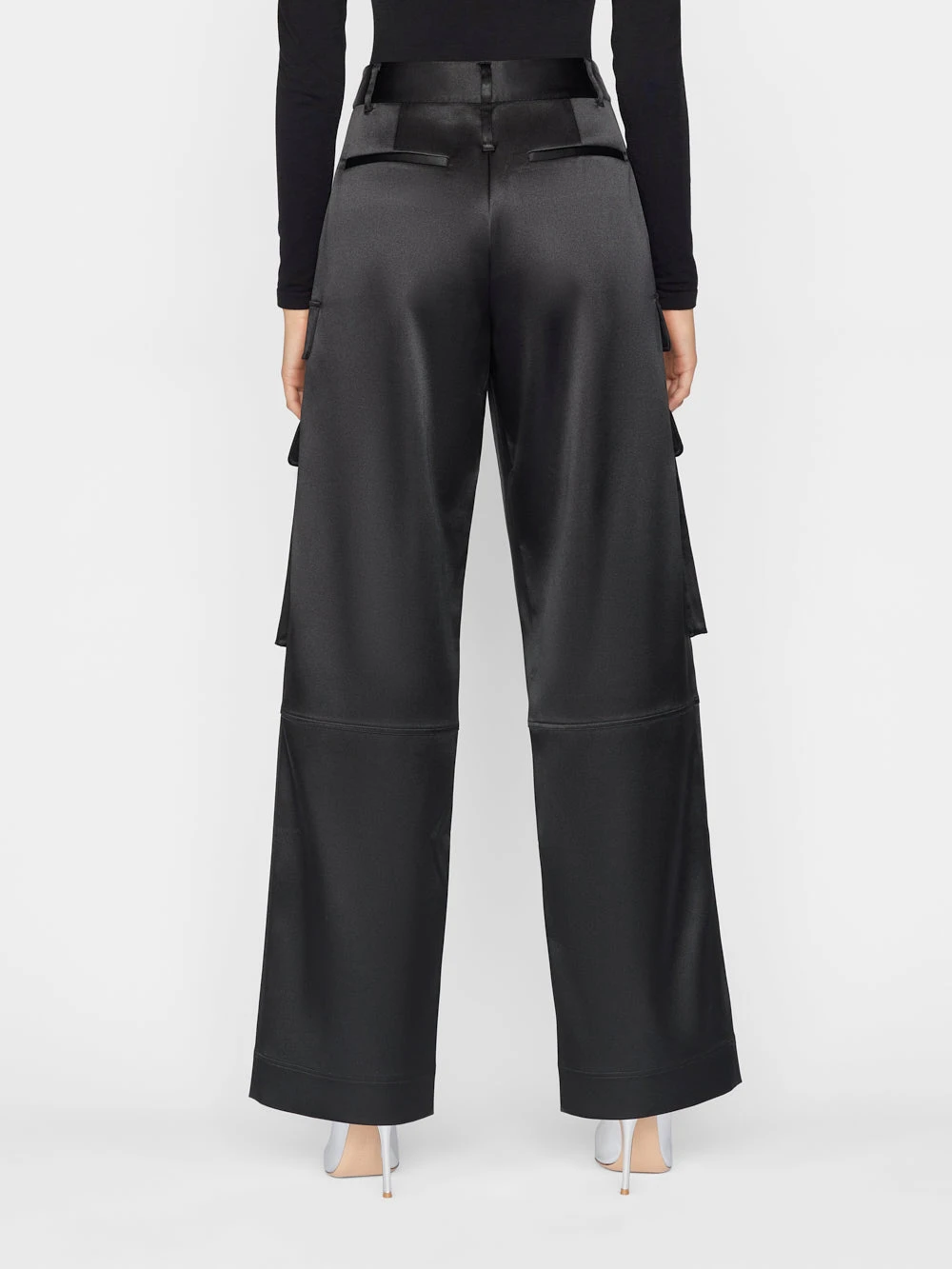 Please note: This is a Sale style. A $12 restocking fee applies for any return that includes Sale styles, deducted from the refund total. A chic, feminine nod to fashion’s utilitarian moment, this luxurious bonded silk cargo pant is done in rich Noir—perfect for pairing with a matching blazer or halter top. With a high-rise waist and wide leg, this relaxed cargo is the key to your understated, on-trend party look.