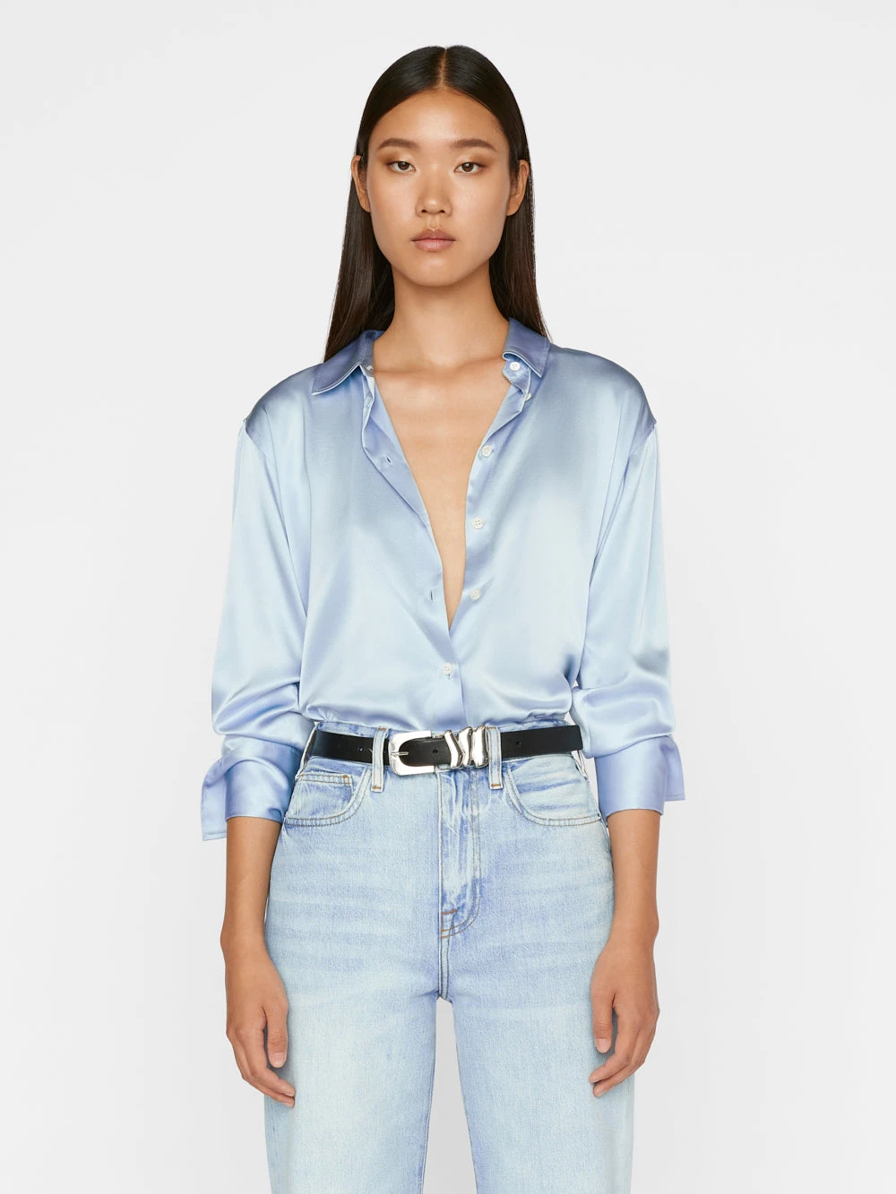 SKU: ZNJHB 7189404123312 Categories: Clothing & Accessories, Tops & Blouses, Women Tags: _badge:25FF0323_FP, _badge:cyber22excluded, _badge:july23_MD_sitewide, _badge:june23_sample_sale, 6.28.23_republish, Clr-dscrp::CHAMBRAY BLUE, Collection::all sale, Collection::giftsforher, Collection::new markdowns, Collection::sale tops, Collection::ss tops, Collection::tops & blouses, Collection::women, Collection::womenclothing, Color-code::CMBL, Cyber-welcome-code, Delivery::W22_D2, Filter-color::Blue, Filter-fabric::Silk, Filter-sleeve::LONG SLEEVE, Filter-style::NA, Filter-top::Regular, Fit:true, FLOW_INTL, FLOW_US, InventoryClassification::W22, JUL23SITEWIDE, Remove New Tag, Republish_7.3.23, RESTOCKINGFEE, Rtly-exchange-group:The-Standard-Shirt-398, Rtly-shipping-rate:12, Season::W22, Style-code::LWSH2434, Styled::le-high-n-tight-taper-demarco, Styled::le-high-n-tight-wide-leg-bilson-rips, Styled::organic-shape-tri-keeper-belt-noir-w-silver-hw, Swatch:The Standard Shirt-sale, Topsize